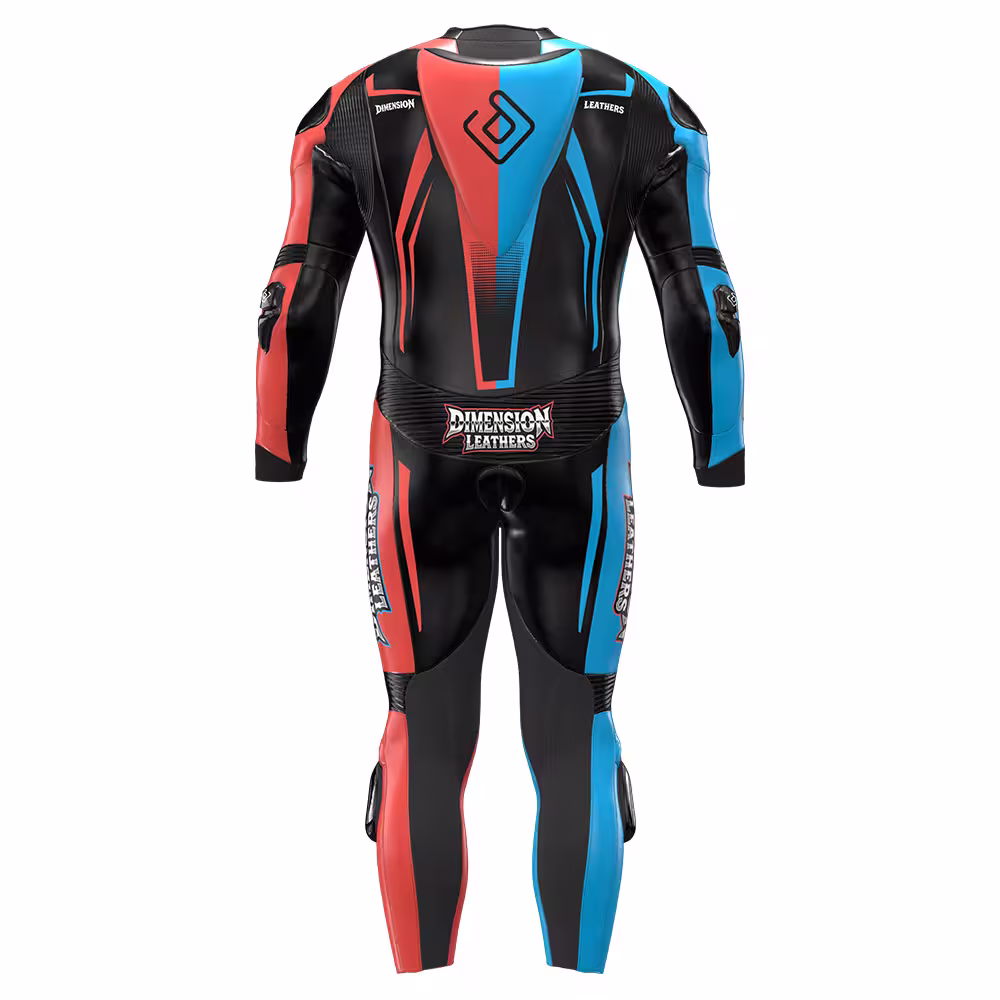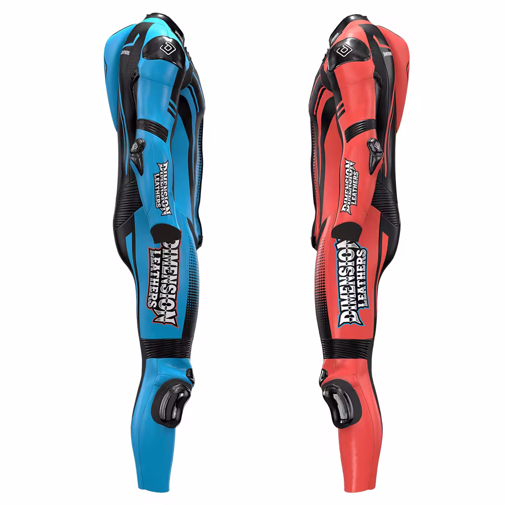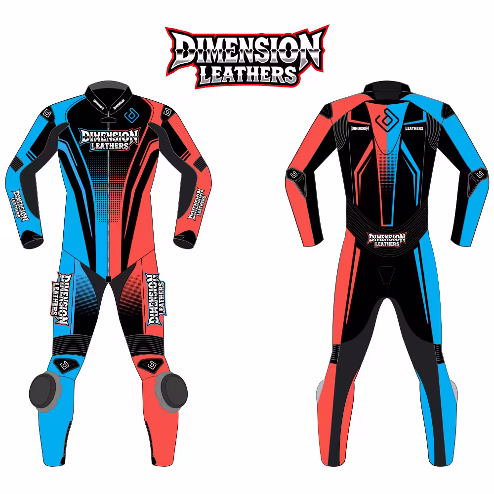 The Custom One Piece Motorcycle Racing Suit by Dimension Leathers delivers professional-level safety, precision fit, and race-ready performance for demanding riders. Our team uses advanced tailoring techniques to create a custom racing suit that gives maximum control, comfort, and confidence on both the track and high-performance road rides.