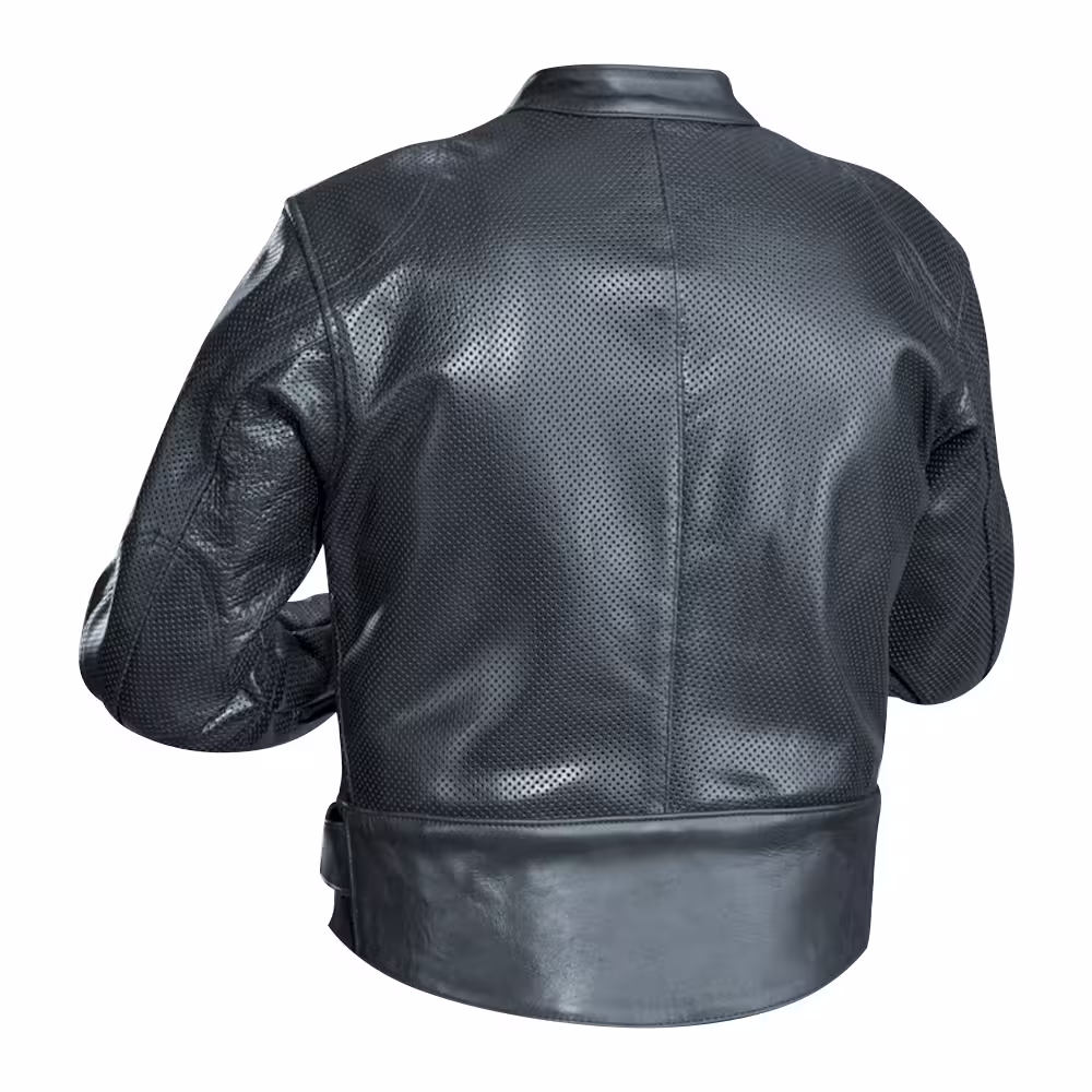 High-quality perforated motorcycle leather jacket designed for airflow, comfort, and performance. Perfect for summer riding and daily use
