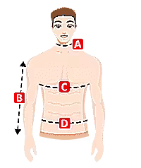 | CHEST | 86-90 | 90-94 | 94-98 | 98-102 | 102-106 | 106-110 | 110-114 | 114-118 | 118-122 | 122-126 | 126-130 |